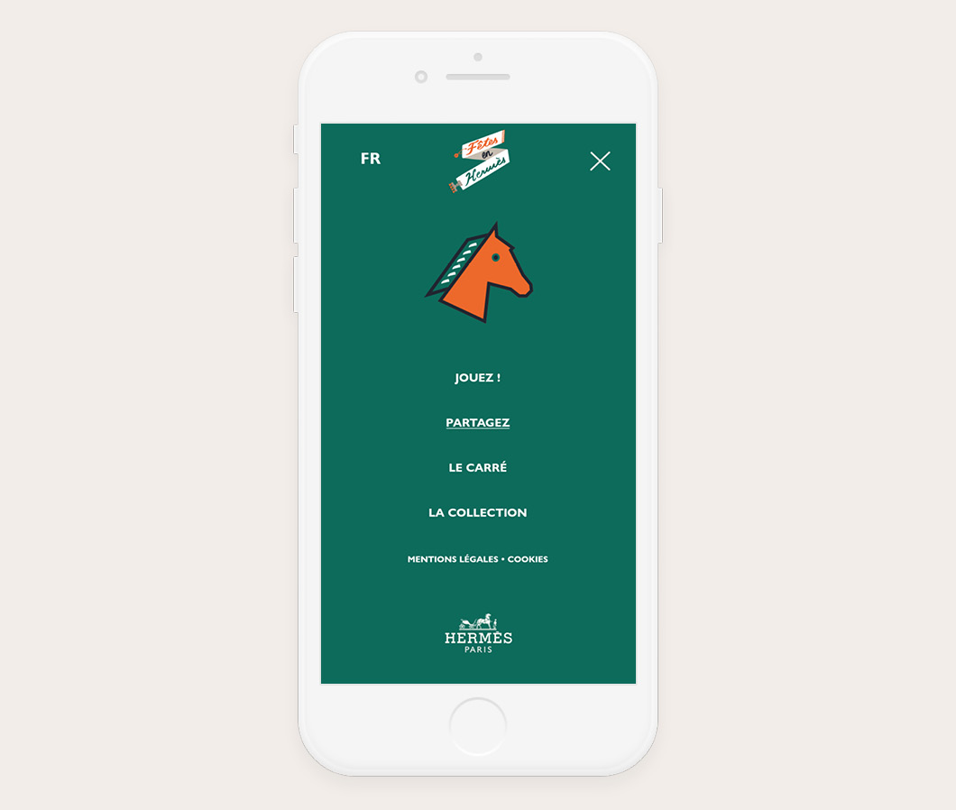 Direction artistique d’un story-board et des livrables pour un jeu sur la période de Noël à destination d’Hermès. Dessin d’une mascotte et conception des trois jeux qui viennent s’enchaîner à la suite. Carré Hermès : Virginie Jamin, Identité visuelle : Artworklove, Développement web : Digital Prod, Réalisé en collaboration avec Publicis EtNous.